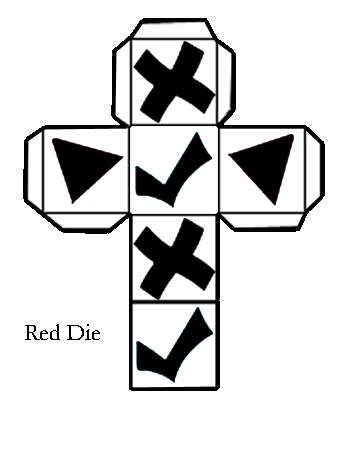 I hope you enjoyed this little instruction guide on making your own Dice-A-Roo game. I realize that I've changed some of the dice (e.g.. the Red dice has no skull). This is to make the game more enjoyable and fair as I doubt that the online version of Dice-A-Roo has a 1 in 6 chance of rolling each of the possibilities (well, plus I keep losing on the first die in Dice-A-Roo!!) If you have any comments, questions, or concerns feel free to neomail me.